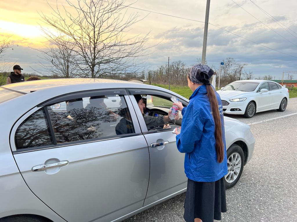 Активисты ЕДЮО "Юные Кадыровцы' провели акцию "Ифтар". Были розданы финики и бутылочная вода одиноким пожилым людям, инвалидам, а также людям, которые во время ифтара были в дороге.