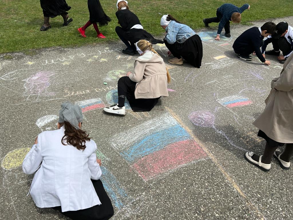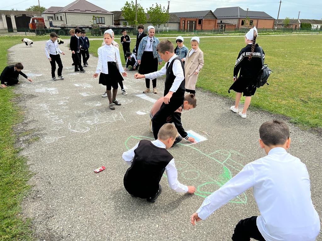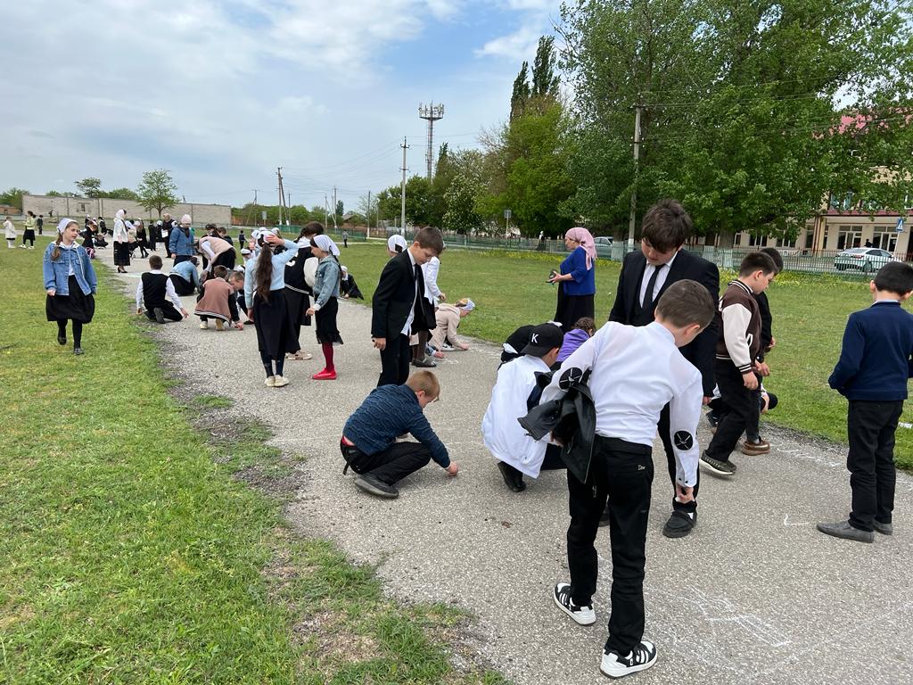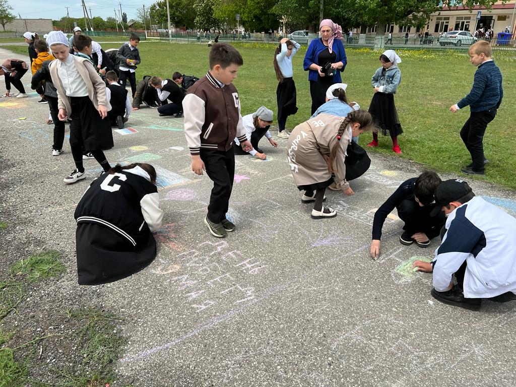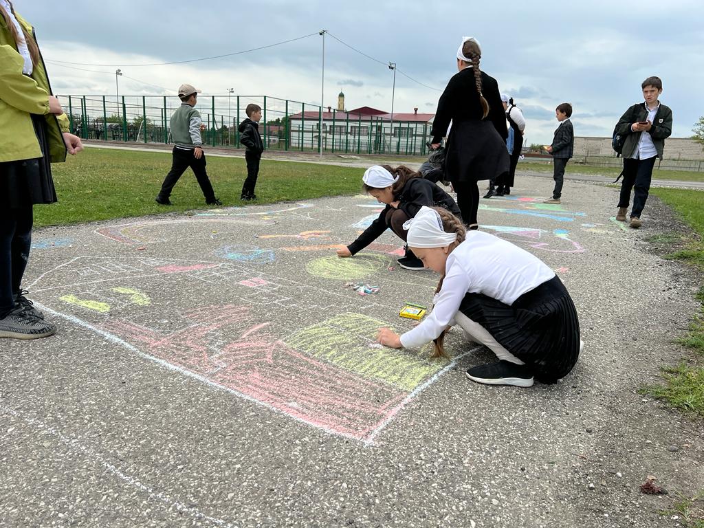 Рисунок на асфальте мелом "Поклонимся тем годам".