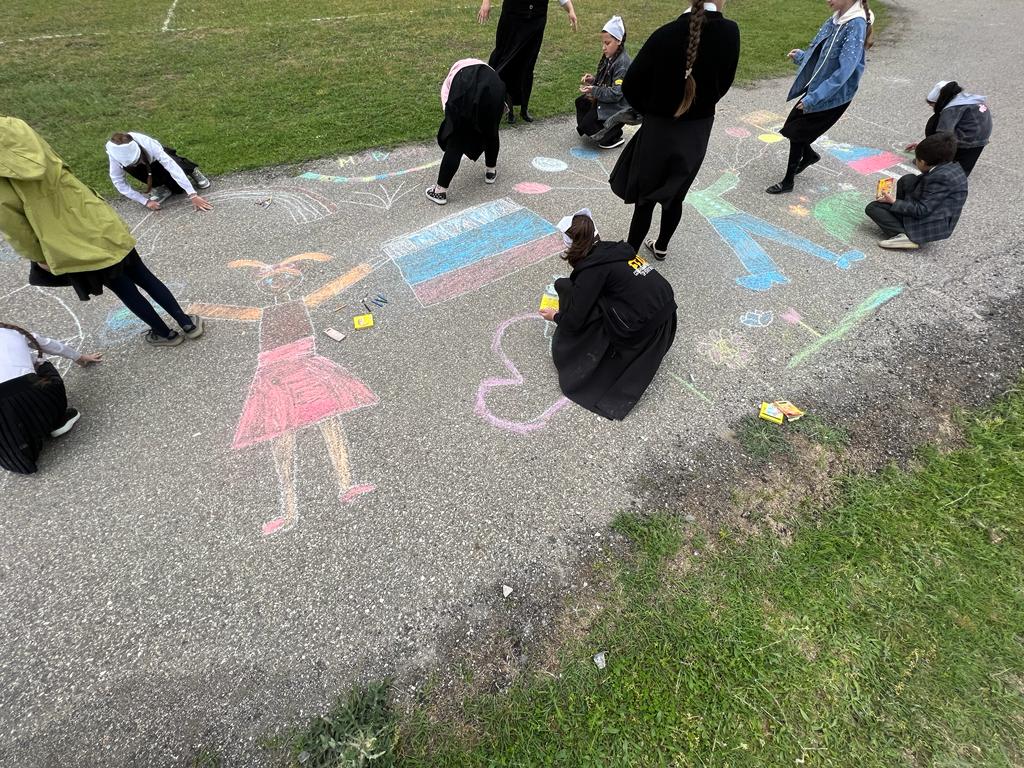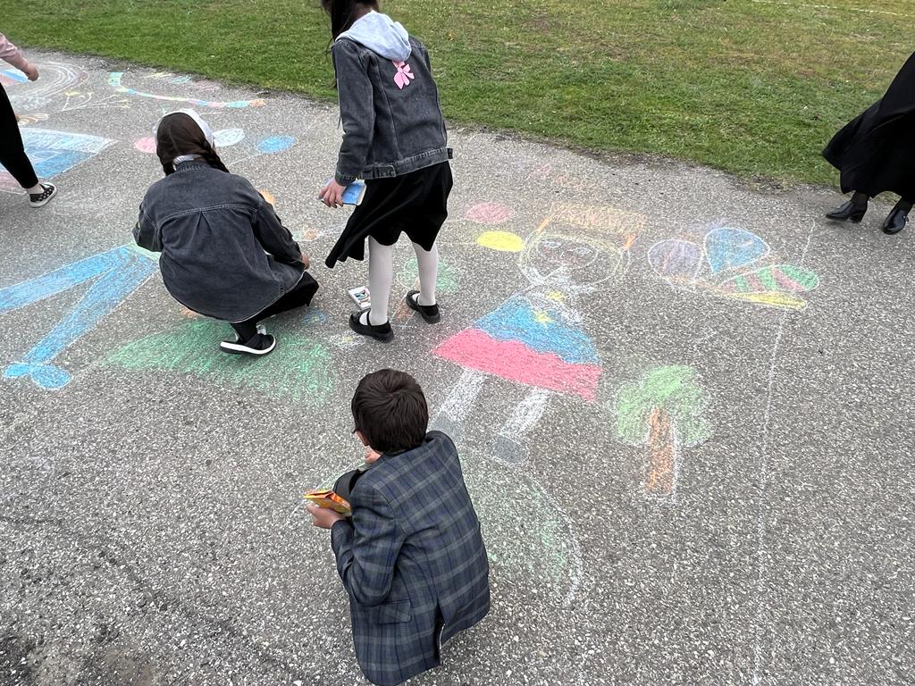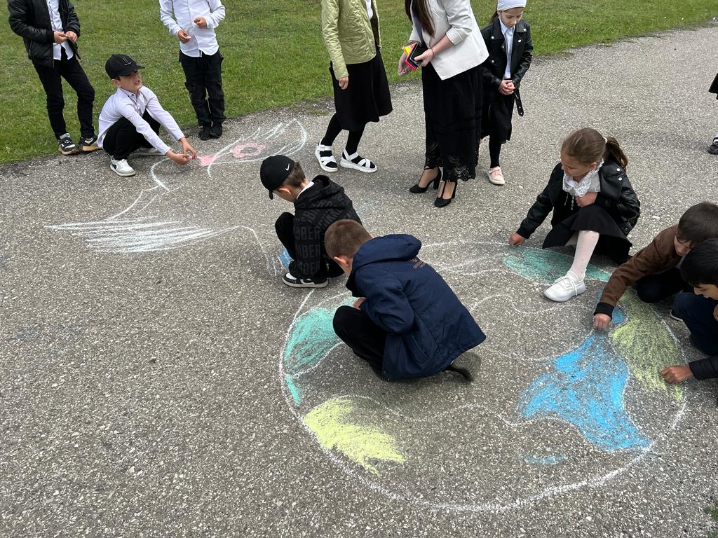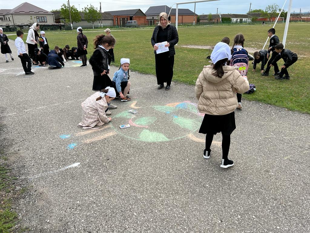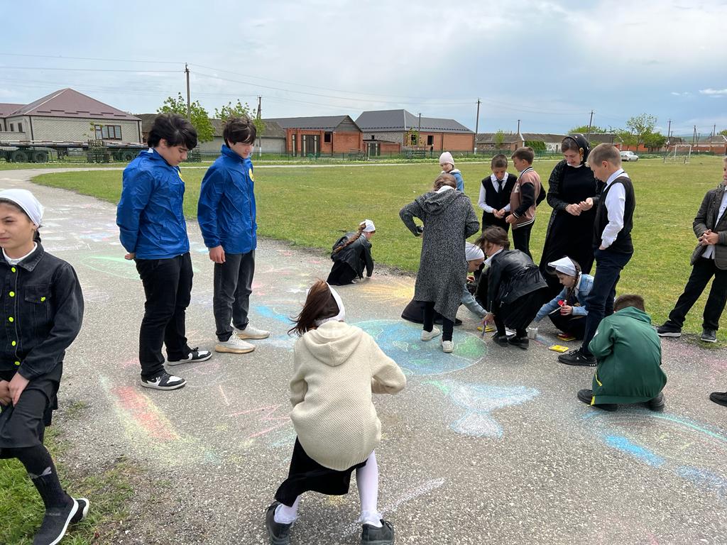 Рисунок на асфальте мелом "Поклонимся тем годам".