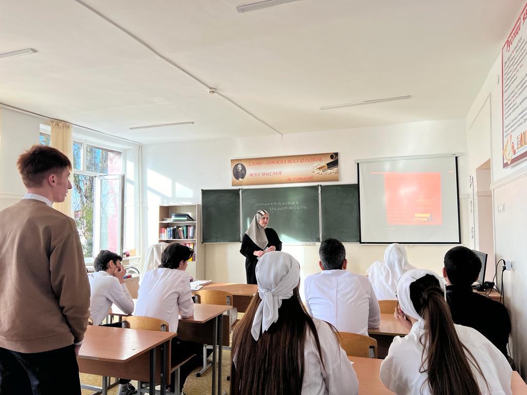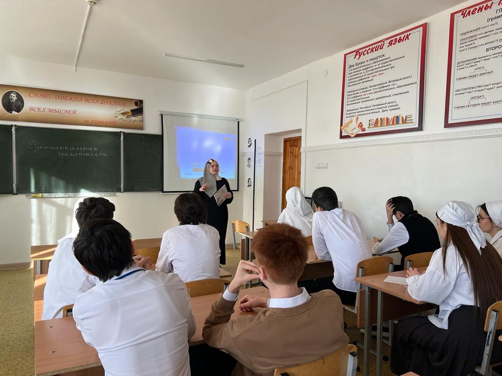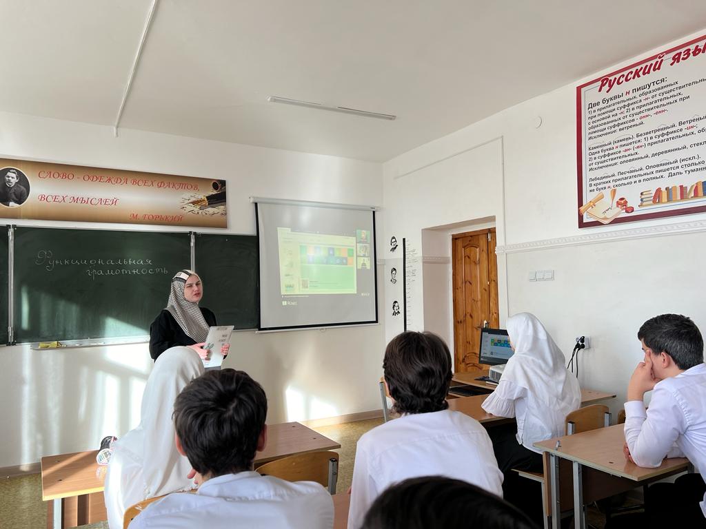 8.02.2024г. в МБОУ «Левобережненская СОШ» прошел урок по функциональной грамотности. Урок в 11-м классе провел учитель русского языка и литературы Даудова З.В.