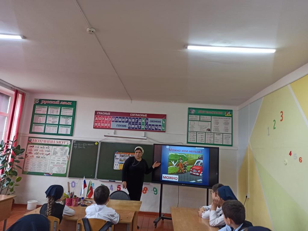 24.01.2024г. классный руководитель 4-го класса «Левобережненской СОШ» Косумова А.З. провела мероприятие по правилам дорожного движения «Можно или нельзя?»