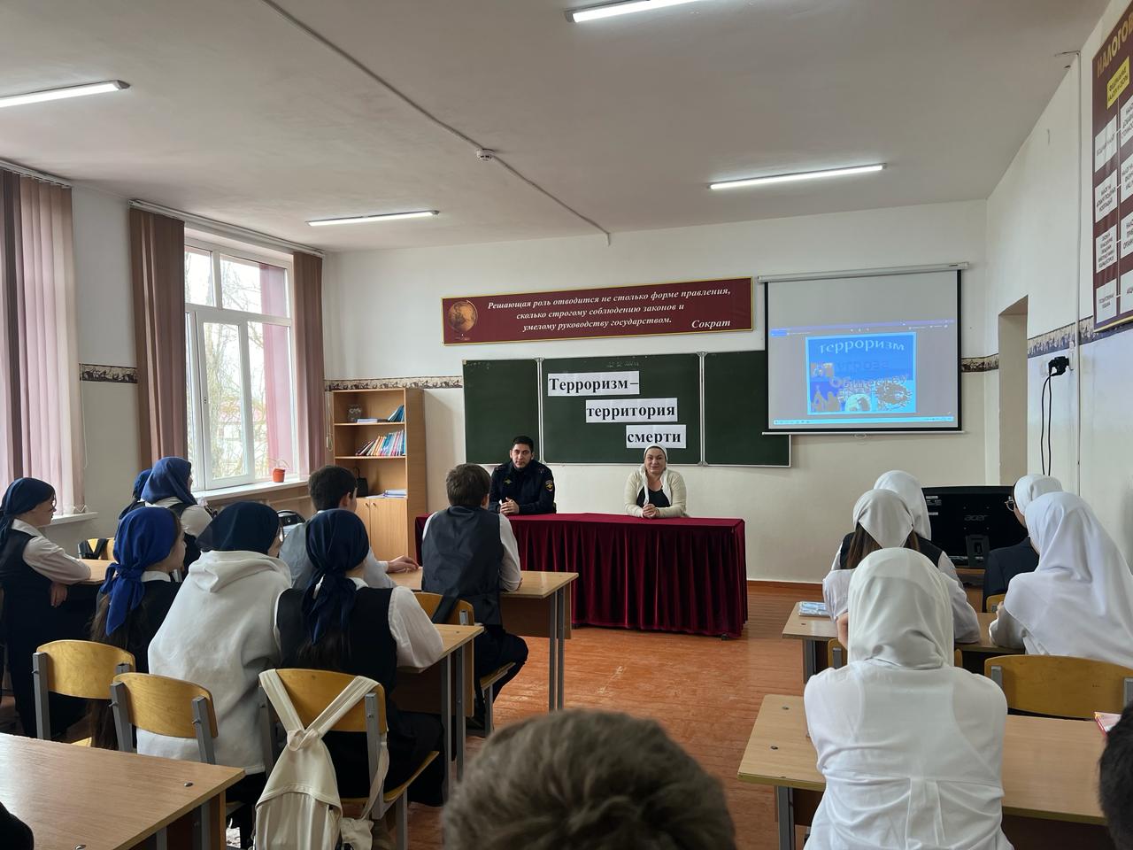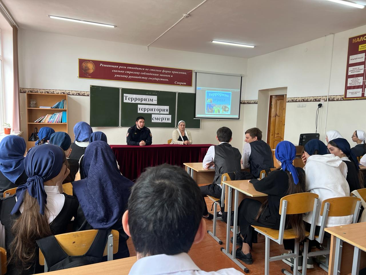 Также учащиеся узнали, что именно молодые люди чаще всего становятся проводниками чуждой и чрезвычайно опасной для настоящего общества идеологии. В завершении беседы все участники пришли к выводу, что важнейшим фактором эффективной борьбы с терроризмом наряду с мерами правоохранительных органов и спецслужб, является умение каждого из нас противостоять терактам, правильно себя вести в условиях этой опасности.