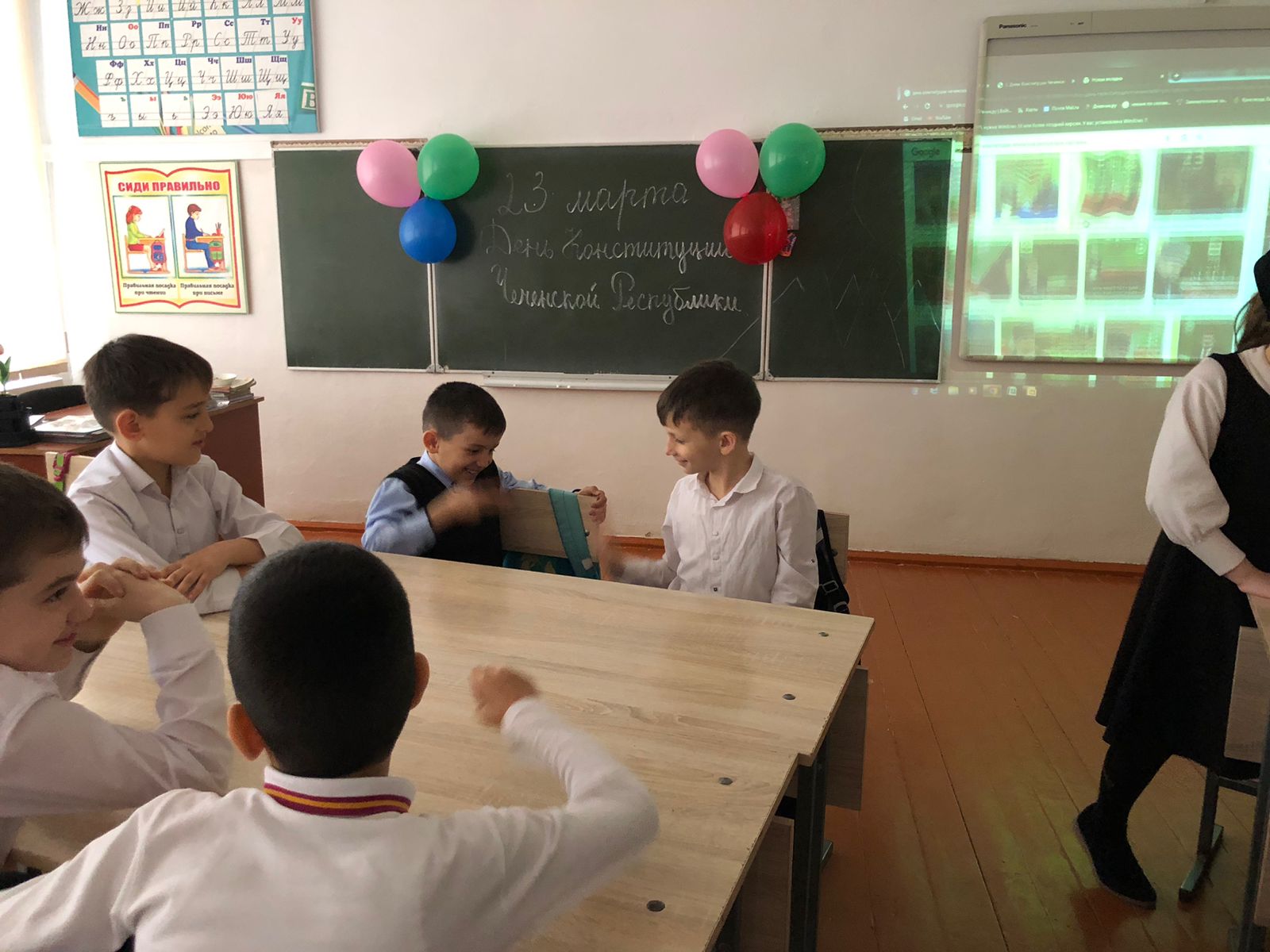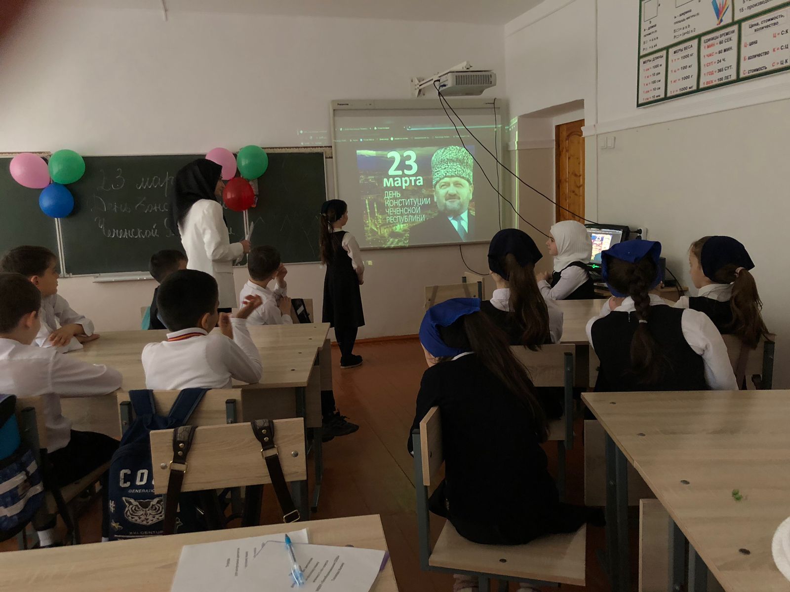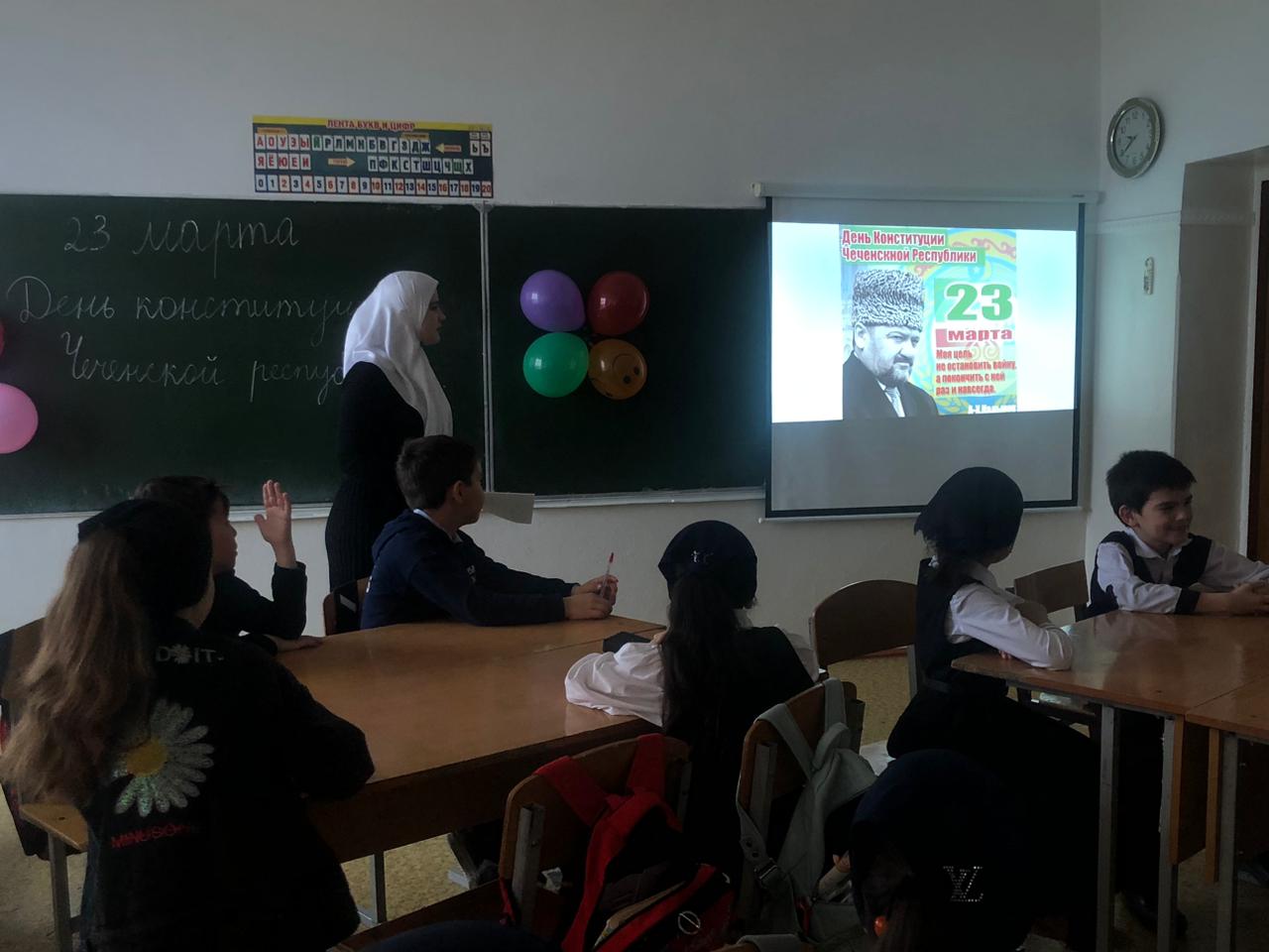С 19.03. по 22.03. классные руководители 1-11 классов провели классные часы "Конституция Чеченской Республики", «День Конституции- что это за праздник», «Конституция -основной закон», «Референдум-путь к свободе и своей Республики» В своих беседах классные руководители подчеркнули значимость даты - 23 марта 2003 г., когда народы Чеченской Республики решительно заявили о своем желании жить и трудиться в составе России.