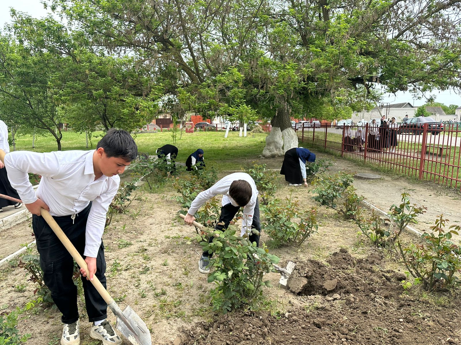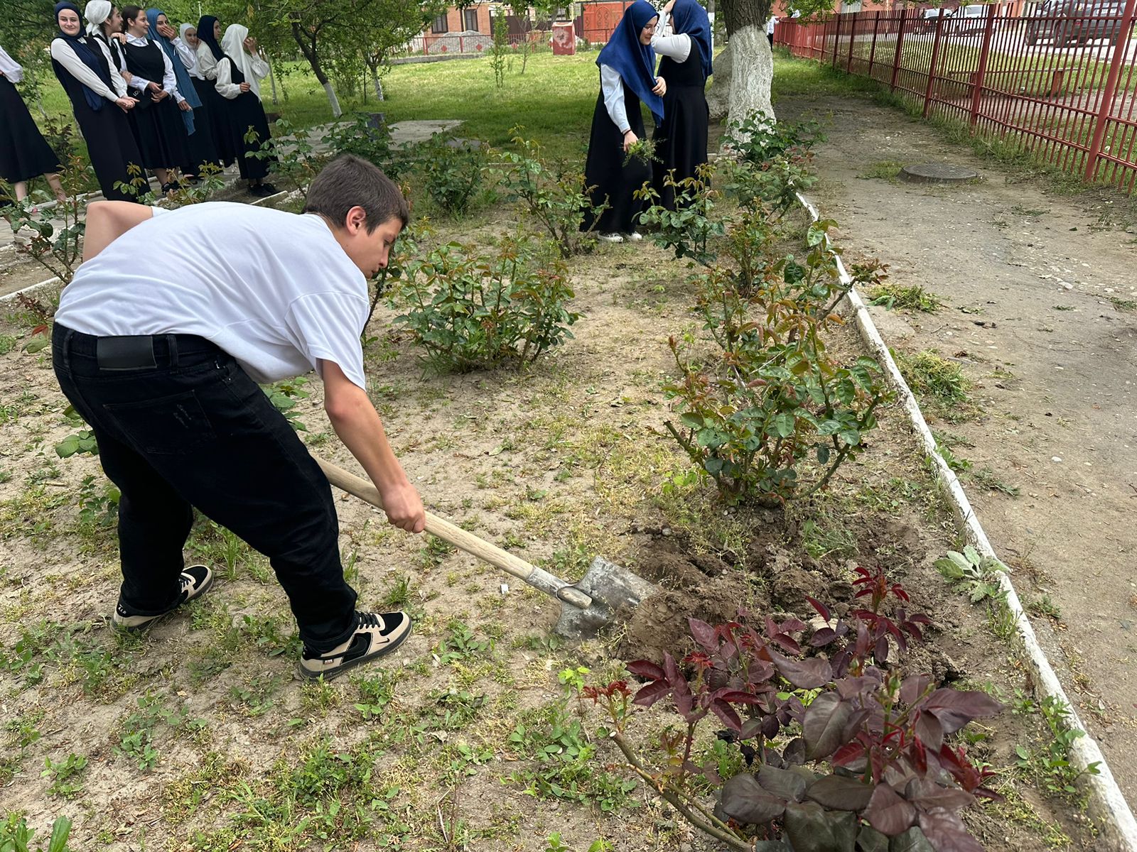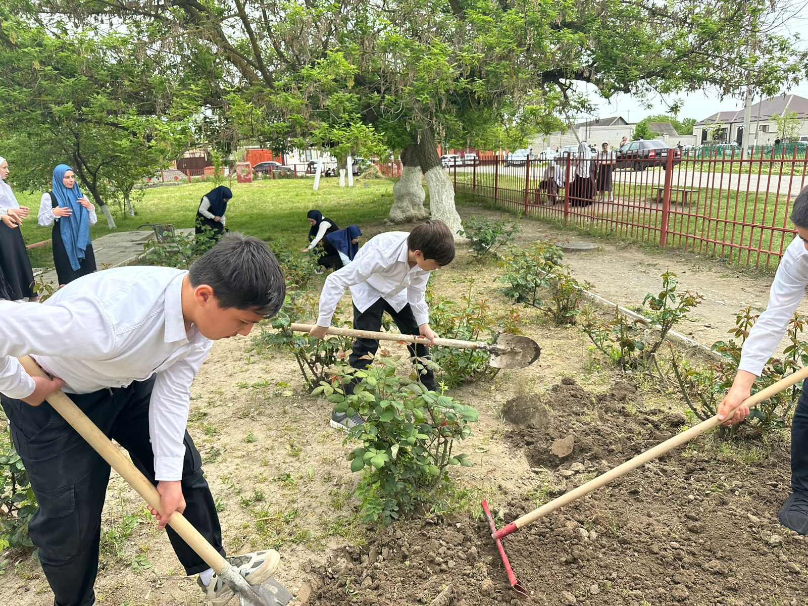 Посадка кустарников на территории МБОУ «Левобережненская СОШ»