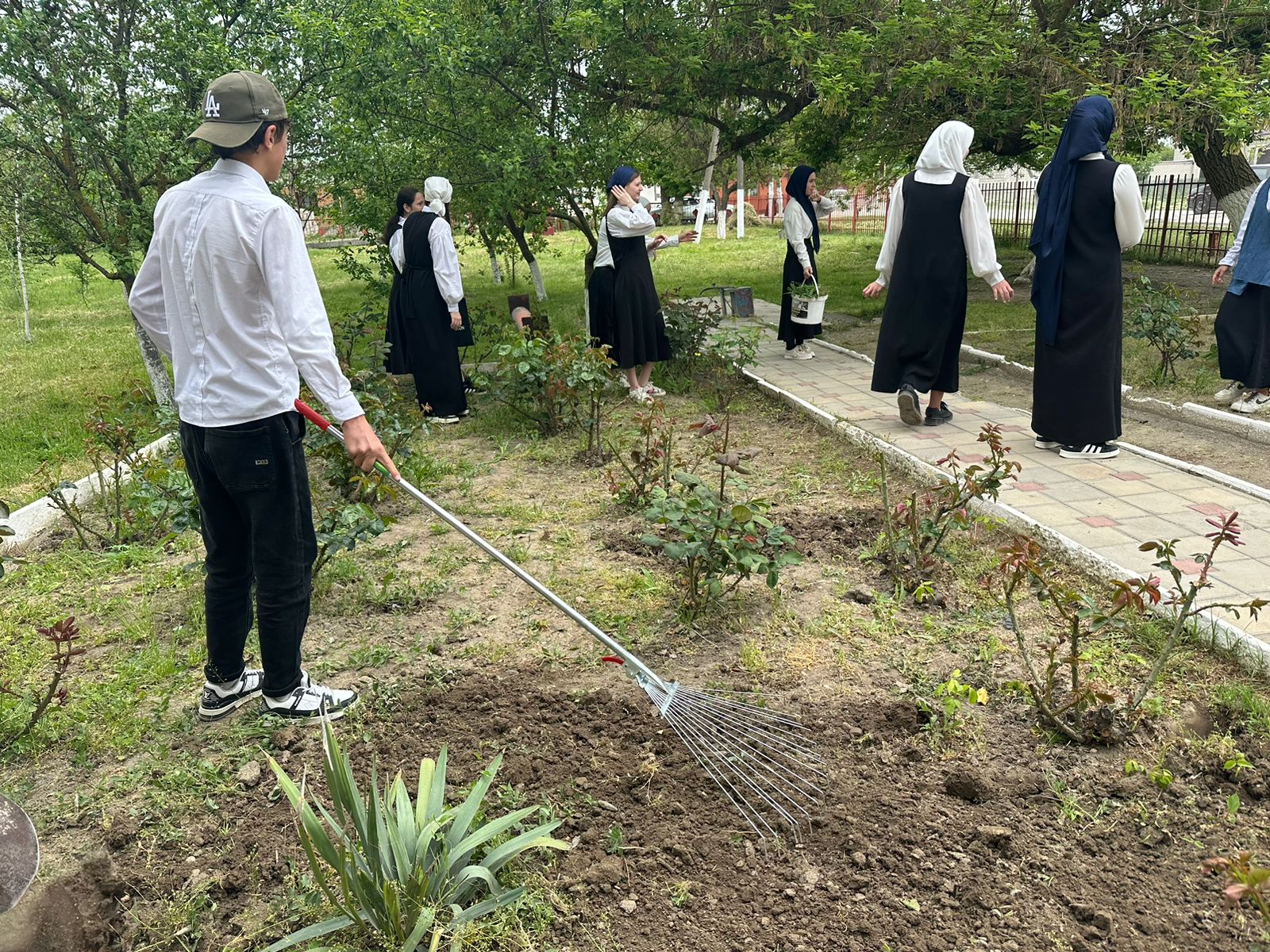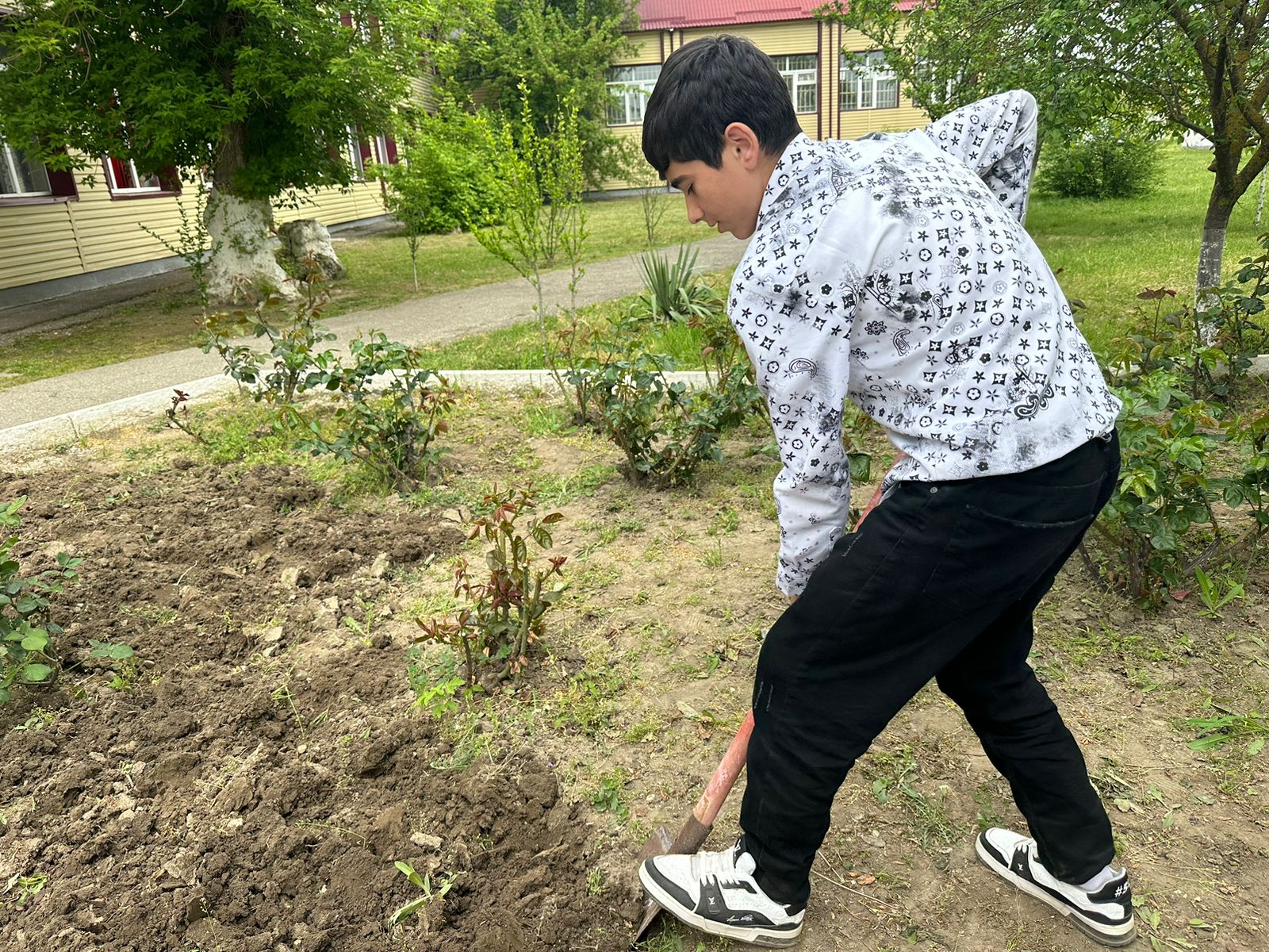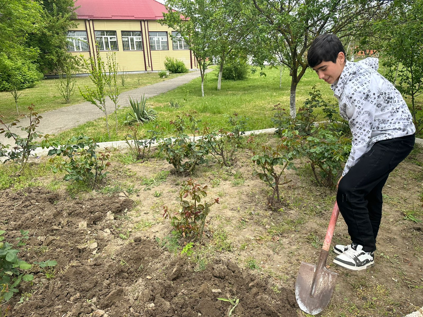 Посадка кустарников на территории МБОУ «Левобережненская СОШ»