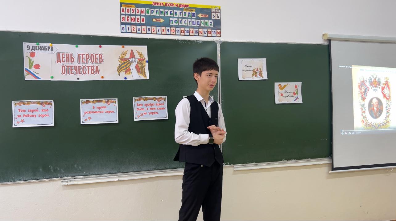 9.12. в МБОУ "Левобережненская СОШ" прошли уроки разговоры о важном по теме "День героев Отечества"