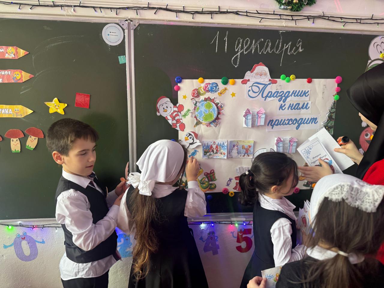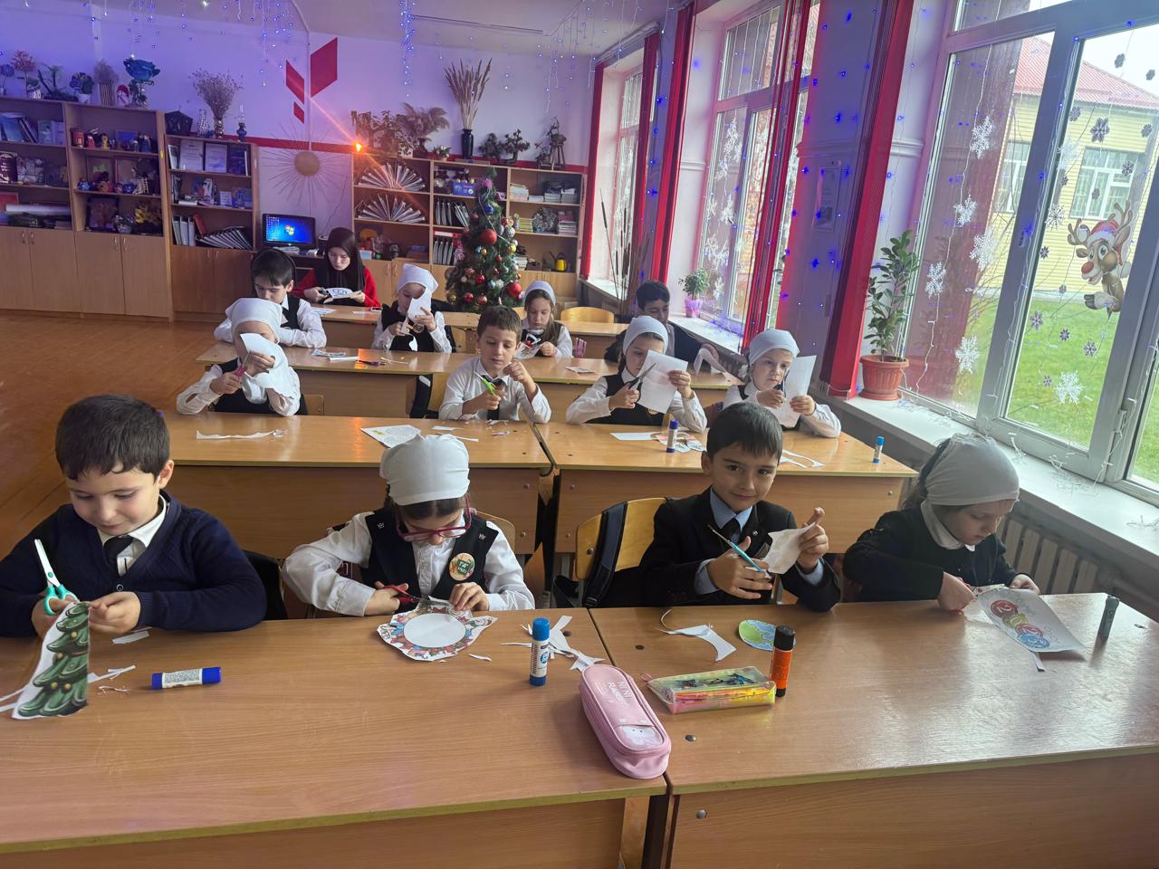 Урок технологии в 1 а классе под руководством Косумовой А.З. Объемная композиция. Групповая творческая работа – проект "Новогодняя открытка"