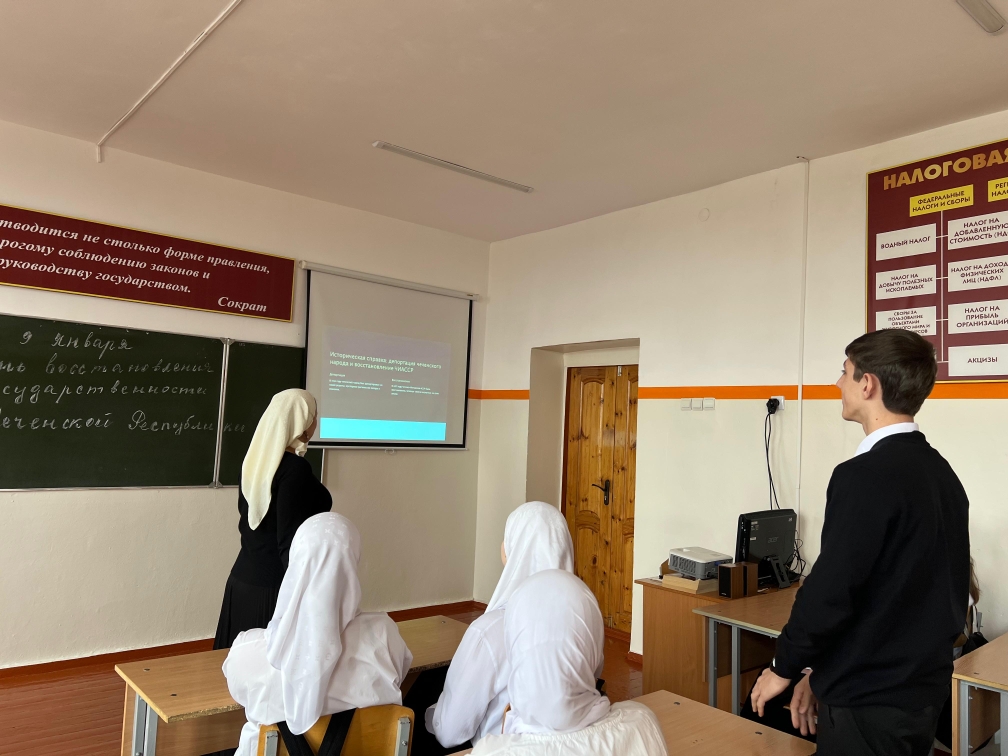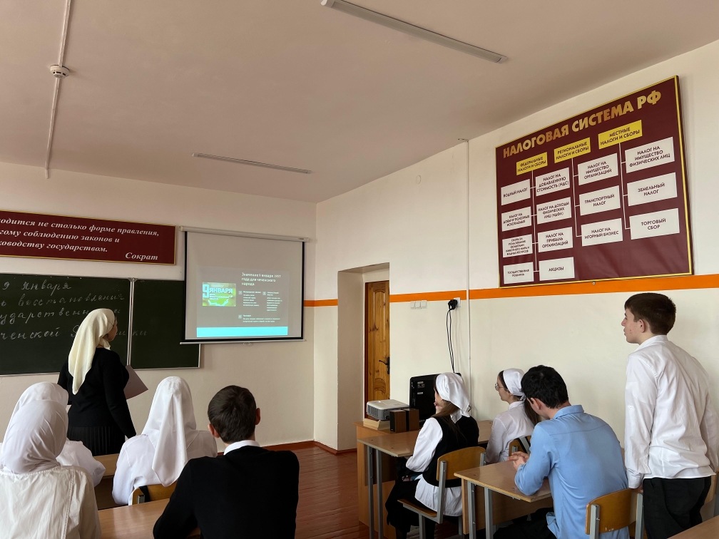 22.01.2025День восстановления государственности в Чечне отмечается ежегодно 9 января. В этот день в 1957 году был издан указ президиума Верховного Совета РСФСР "О восстановлении Чечено-Ингушской АССР и упразднении Грозненской области". В рамках этой даты в МБОУ «Левобережненская СОШ» проведен ряд мероприятий.