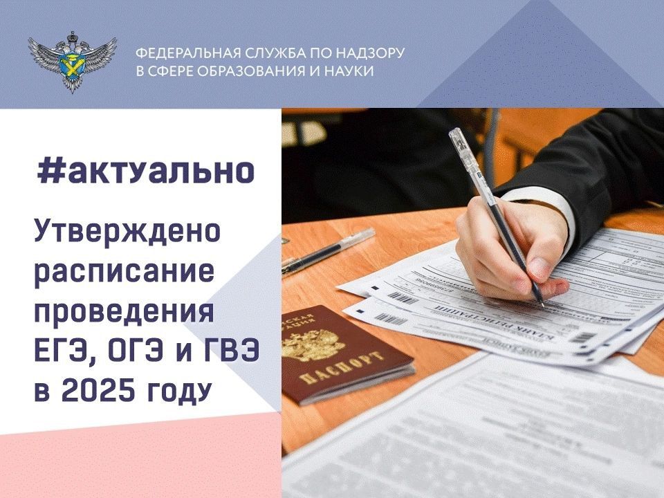 20.12.2024Совместными приказами Минпросвещения России и Рособрнадзора от 11 ноября 2024 года № 787/2089, 788/2090 и 789/2091 соответственно утверждены расписания и продолжительность проведения единого государственного экзамена (ЕГЭ), основного государственного экзамена (ОГЭ) и государственного выпускного экзамена (ГВЭ) по каждому учебному предмету, перечень средств обучения и воспитания, которые можно использовать при выполнении экзаменационных заданий. Документы были зарегистрированы Минюстом России 10 декабря 2024 года.