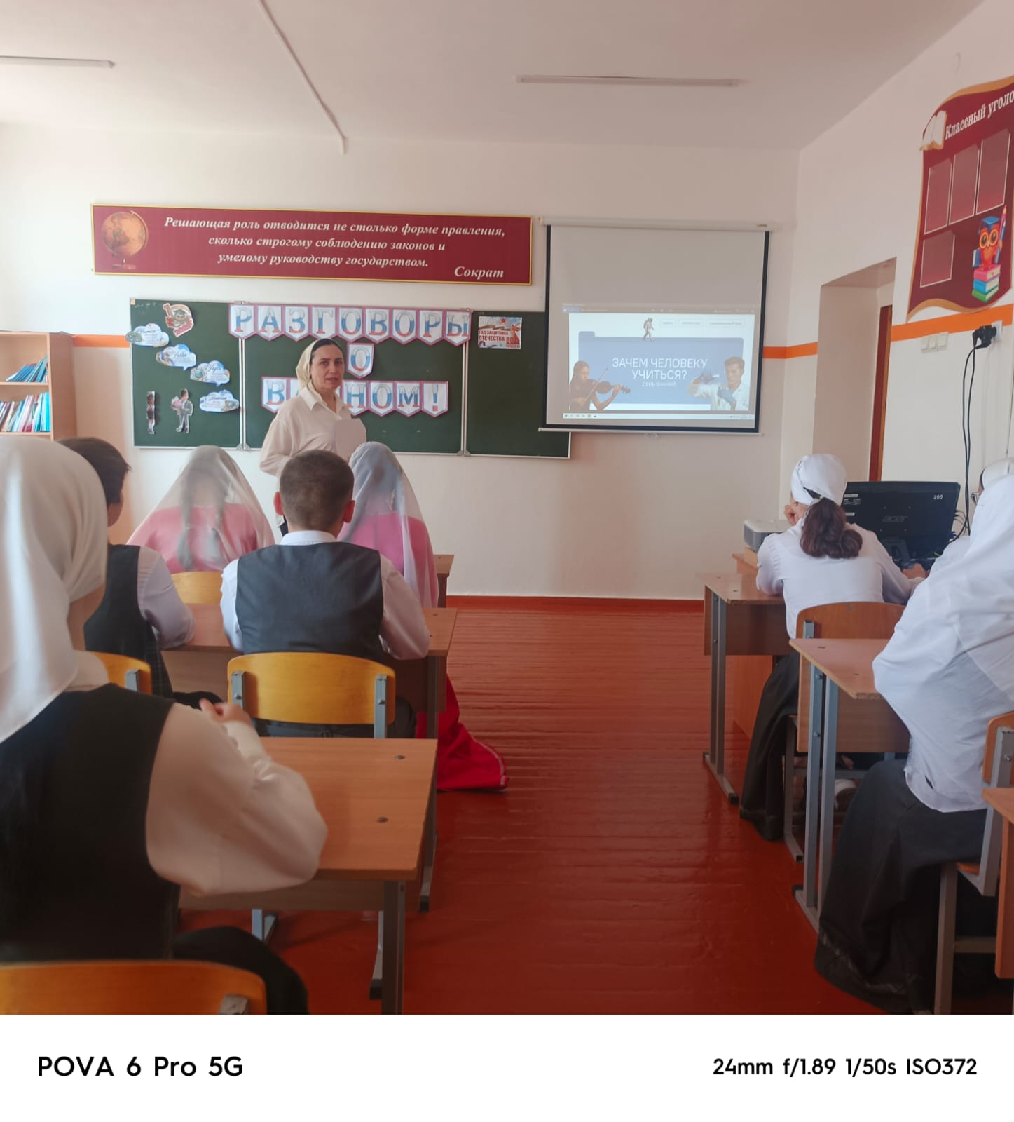1 сентября проведены первые в этом учебном году уроки "Разговоры о важном". Тема урока соответствовала празднику "День знаний"- "Зачем нужно учиться?"
