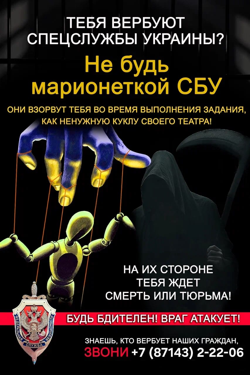Тебя вербуют спецслужбы Украины? Звони +7(87143)2-22-06