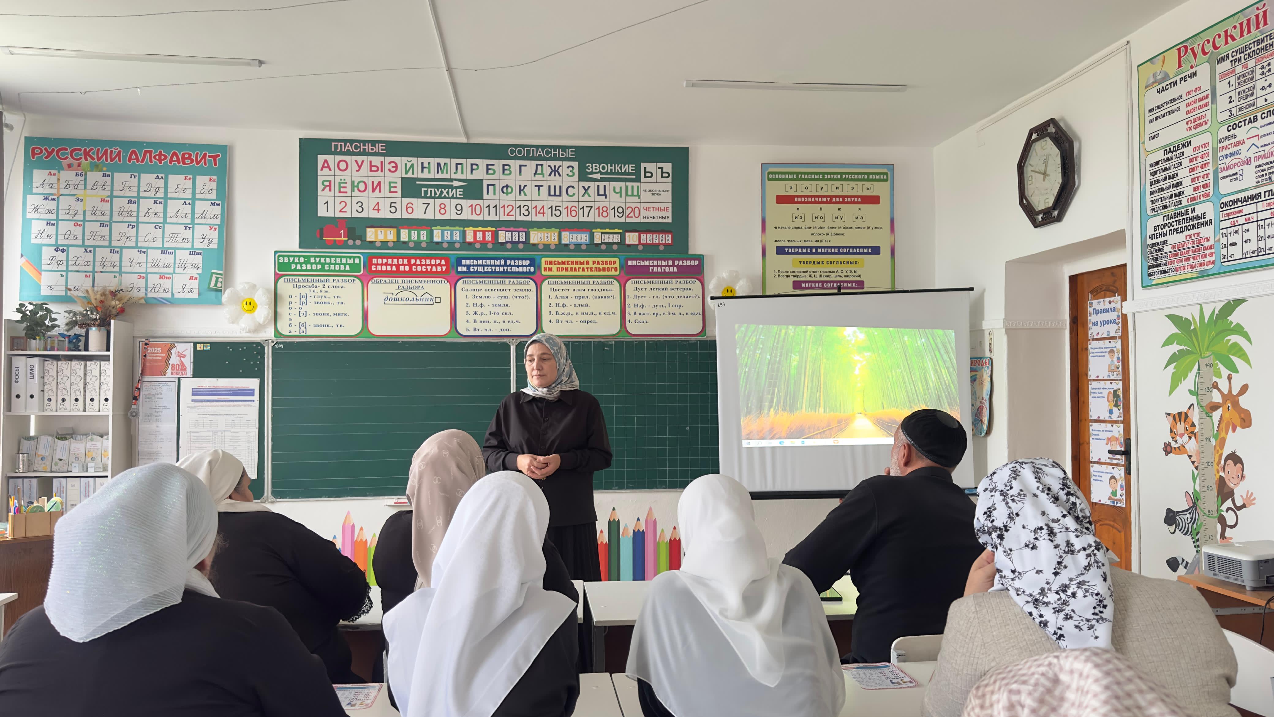 Региональный методист по предмету "Чеченский язык и литература " Мучураева Р. А. посетила уроки чеченского языка с целью оказания методической помощи молодым учителям. Так же она провела с педколлективом школы семинар по теме "Система средневзвешенного оценивания".