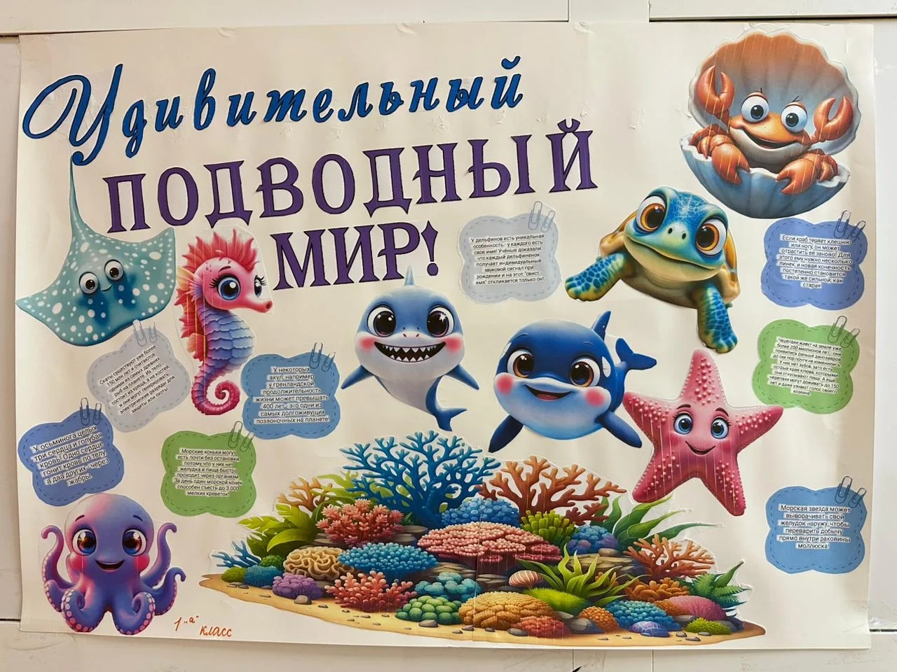 Проектная деятельность в 1 «А» классе на тему «Удивительный подводный мир». Работа над данным проектом позволит обогатить знания детей о морских обитателях, их внешнем виде, строении, узнать интересные факты.