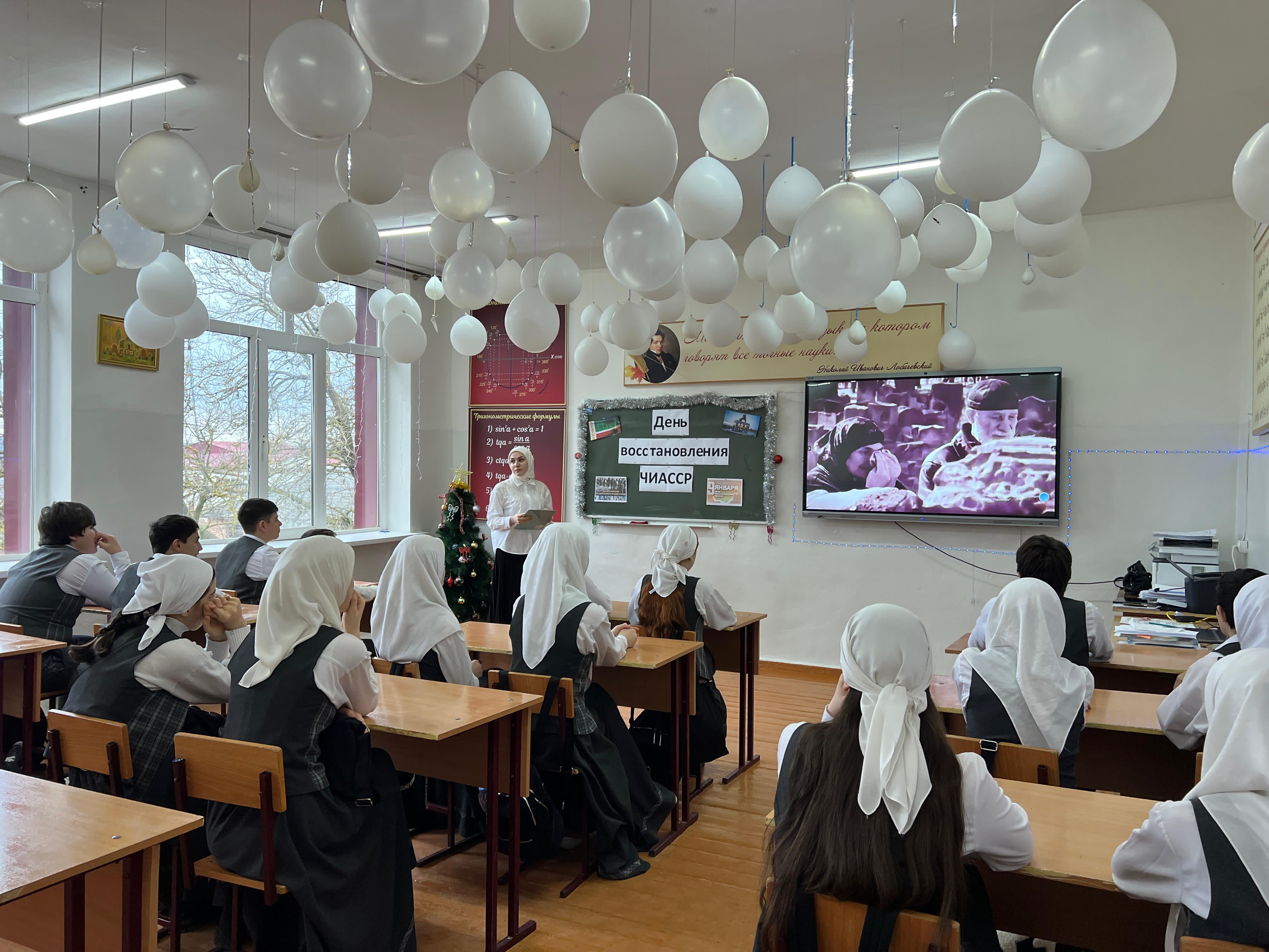 15.01.20269 января- день восстановления государственности ЧИАССР. 12-13 января в школе проведены тематические классные часы, посвящённые этой дате. В ходе проведения классных часов и бесед учащимся рассказали о причинах выселения чеченцев и ингуш отей, о сложностях, возникших на местах переселения и в ходе возвращения народов Чечено-Ингушетии на родную землю.